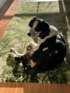 At the time of typing this, I’m waiting for a technician to arrive to switch our electricity meter over to the solar system we’ve had installed and Craig* is in town getting his skin checked (the joys of being a young lad in Australia in the 1970s with next-to-no use of sunscreen), so I’m trying to entertain Fern until the bloke arrives. So far she’s chewed the corner of her bed blanket, jumped on our bed and barked at the hooded plovers who are raising their young on our front lawn.